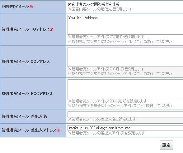 管理者宛メールアドレス(BCC宛て)を設定します。