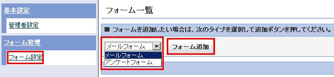 管理画面トップで「フォーム設定」をクリックします。