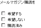 | ・ | ラジオボタン(縦・単数選択) | ・ | ラジオボタン(横・単数選択) | ・ | チェックボックス(縦・複数選択) |
