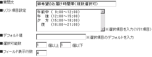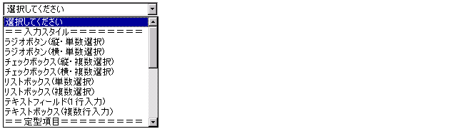 | ・ | チェックボックス(横・複数選択) | ・ | リストボックス(単数選択) | ・ | リストボックス(複数選択) |