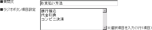 縦並びでラジオボタンを設置します。選択できるのは1項目のみです。(※ラジオボタンを設置した場合、その項目は選択必須となります)