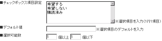 縦並びでチェックボックスを設置します。複数項目を選択できます。(単数選択にしたい場合は、「項目設定」画面内で、「選択可能数」を「1個以上1個以下」に設定します)