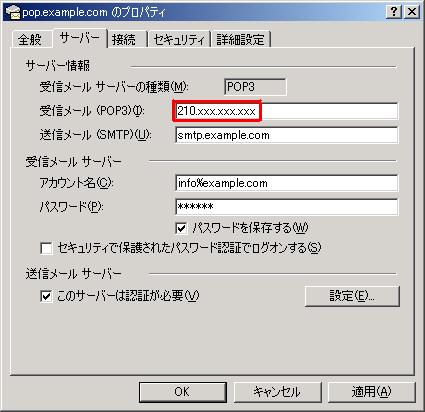 1.POPの設定を旧サーバーのIPアドレスへ変更する